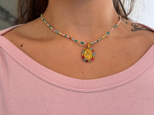 Pink Beaded Virgin Mary NecklaceRegular price $44.00 USDRegular priceUnit price / per$0.00 USDSale price $44.00 USD