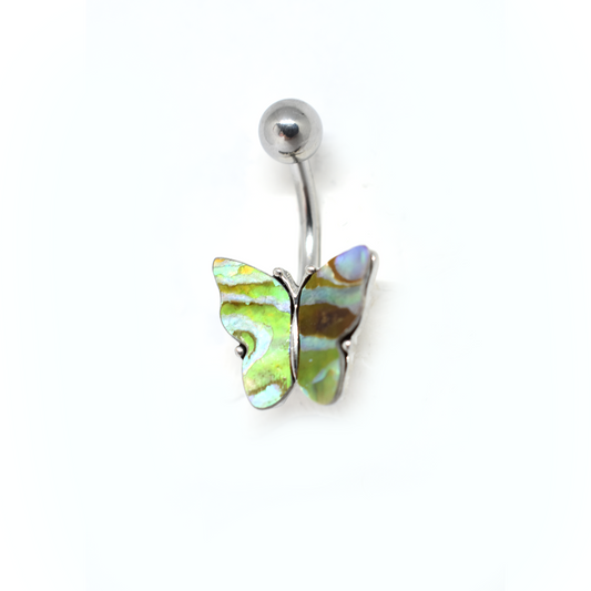 Green Marble Butterfly Belly Ring