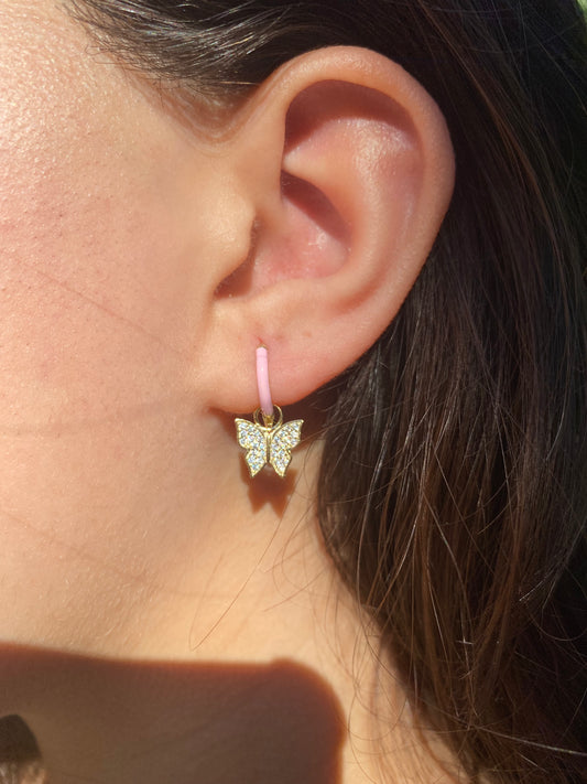 Pink Enamel Butterfly Hoop Earrings
