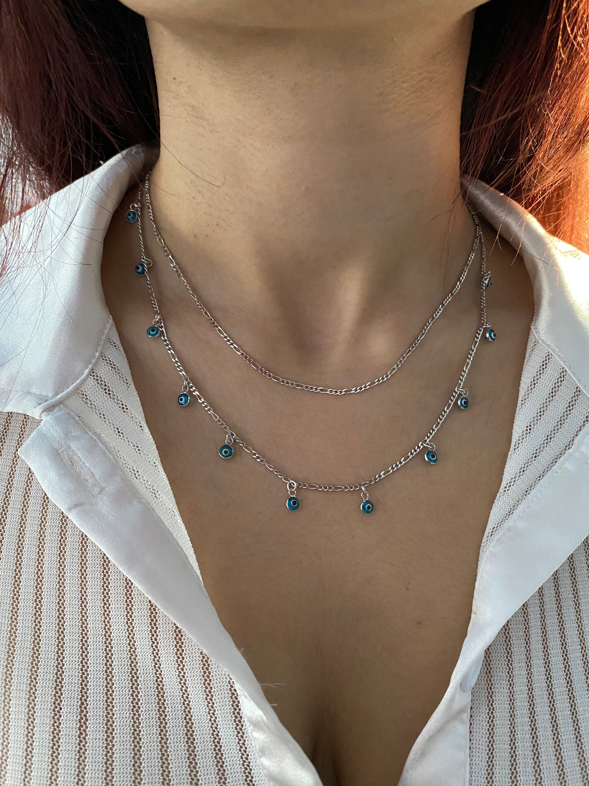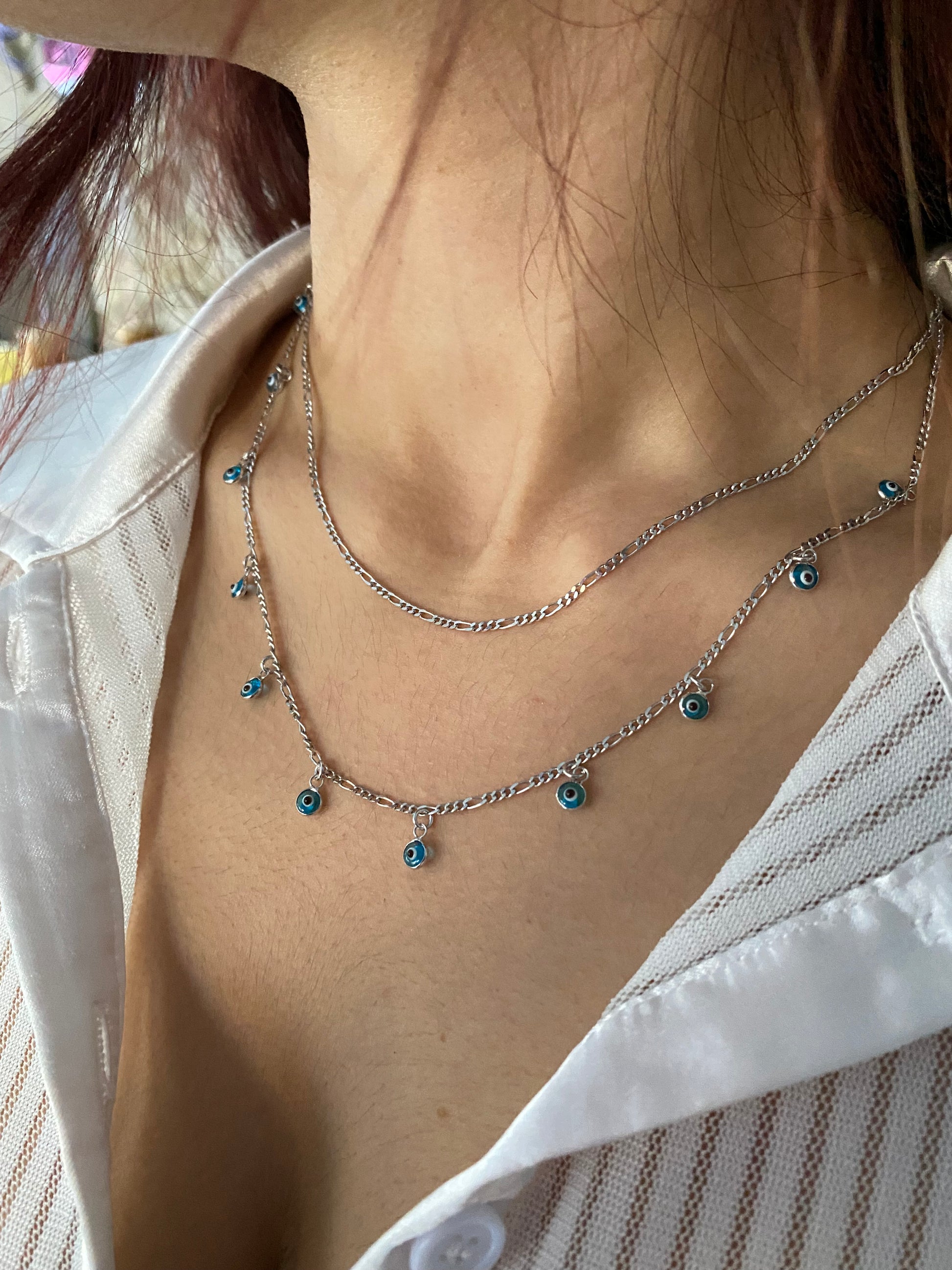 This necklace has two chains attached so when you wear it, the second chain is 1 inch lower than the first one.