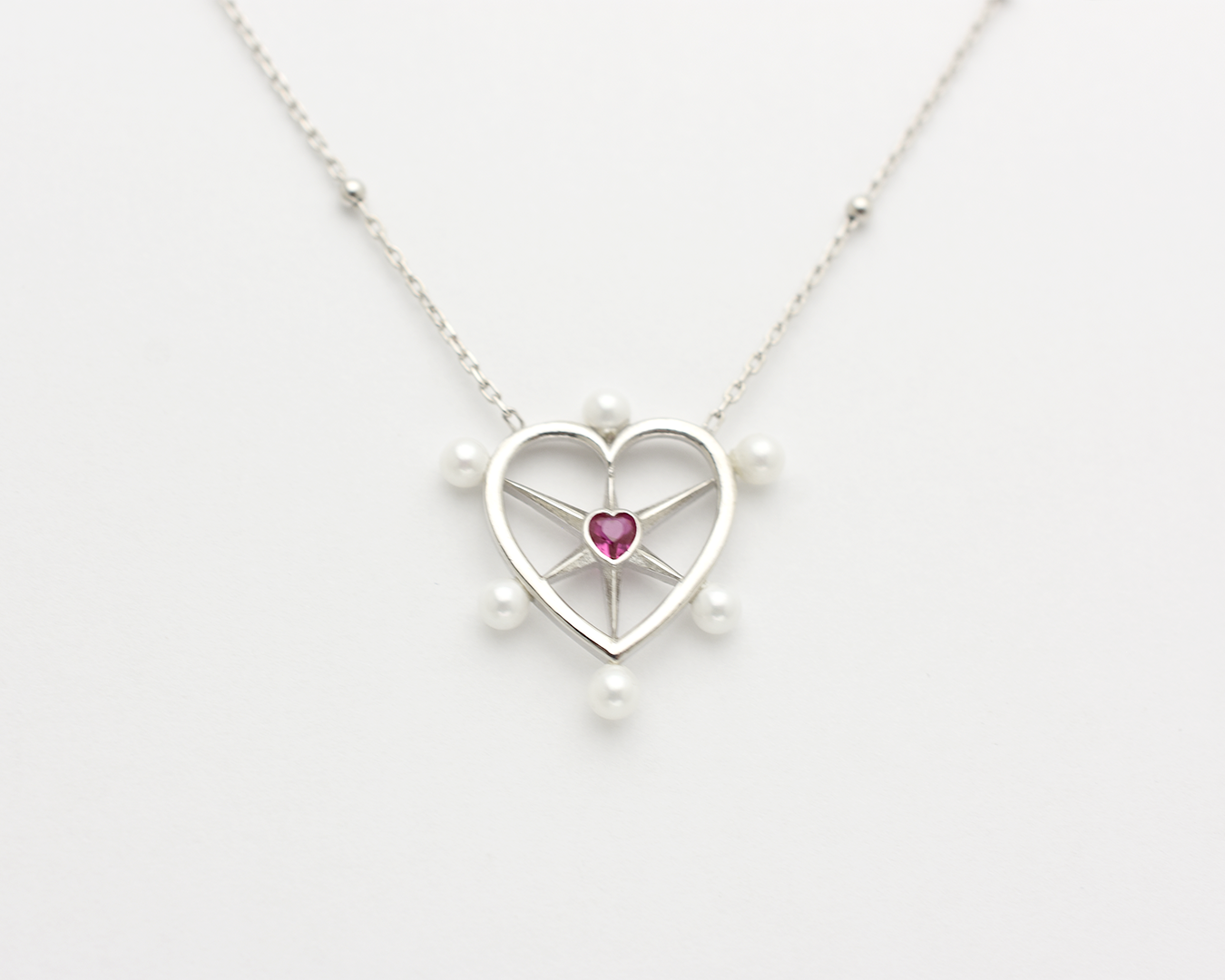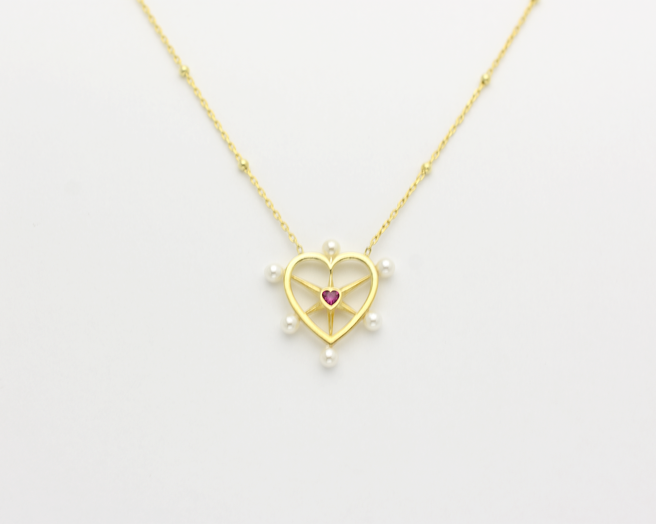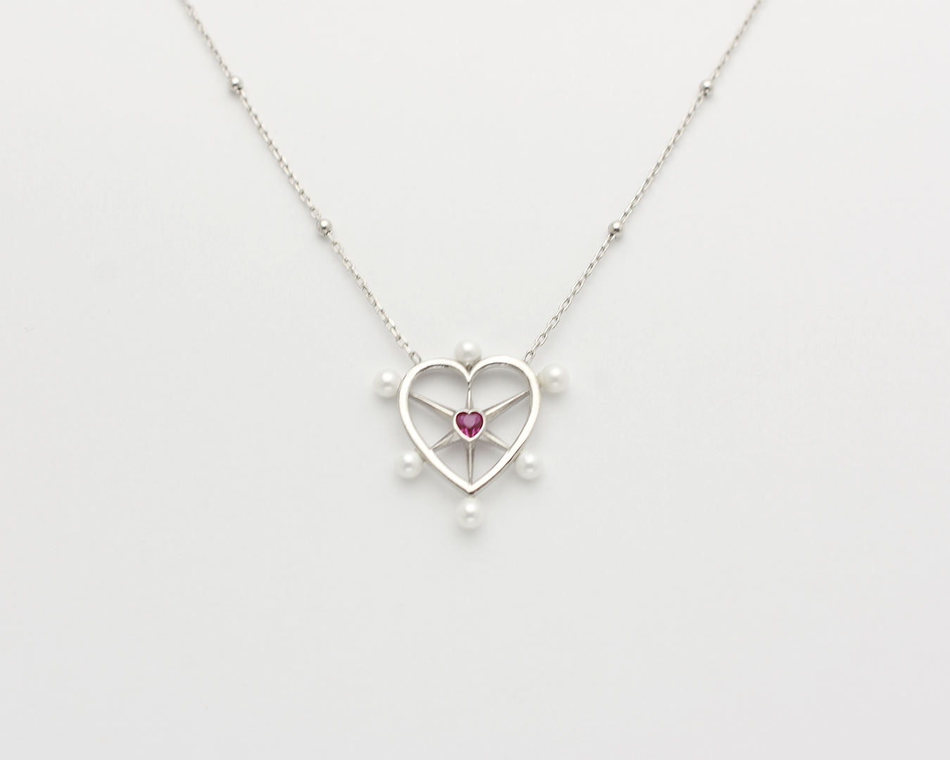 Pearl Ruby Heart Necklace