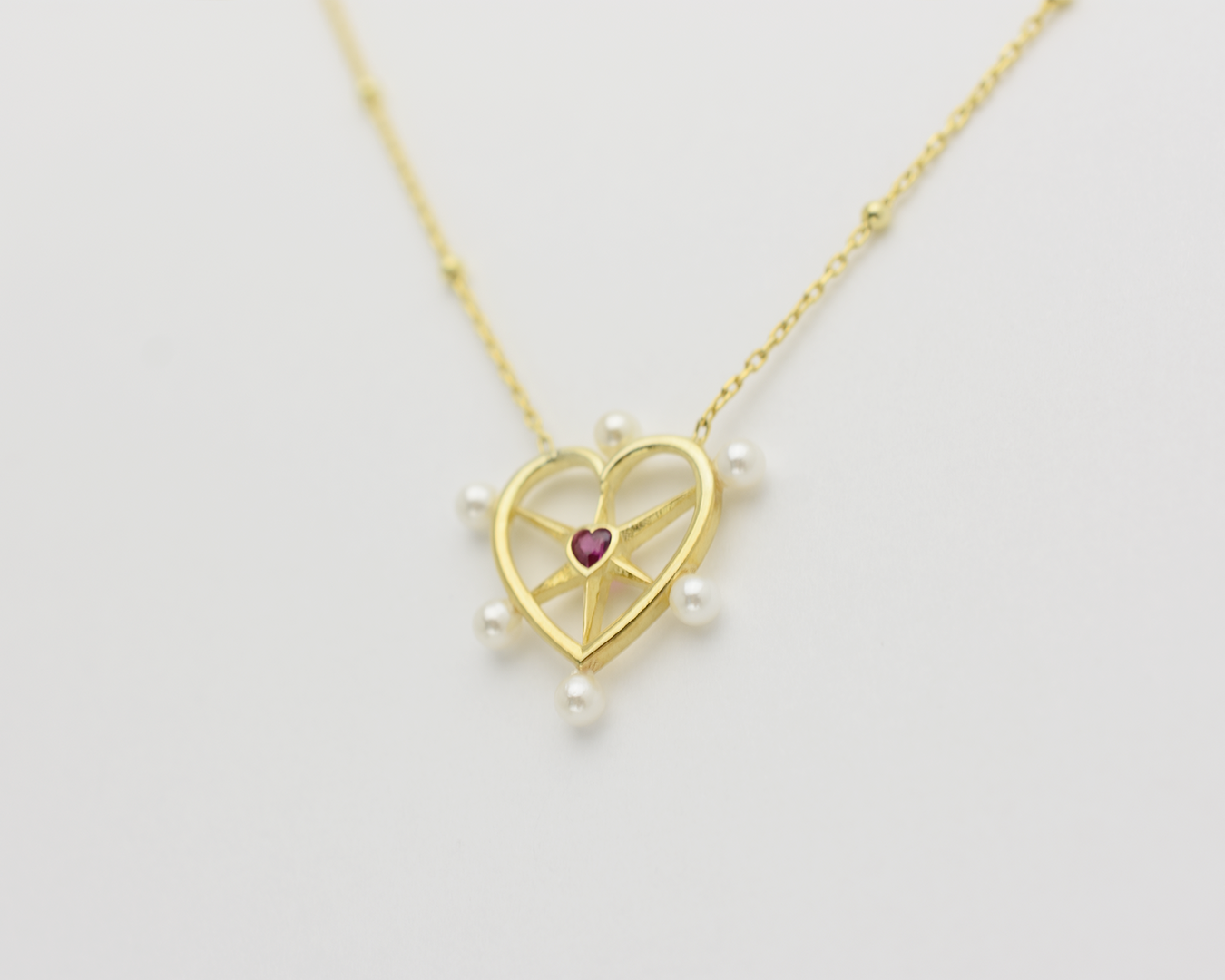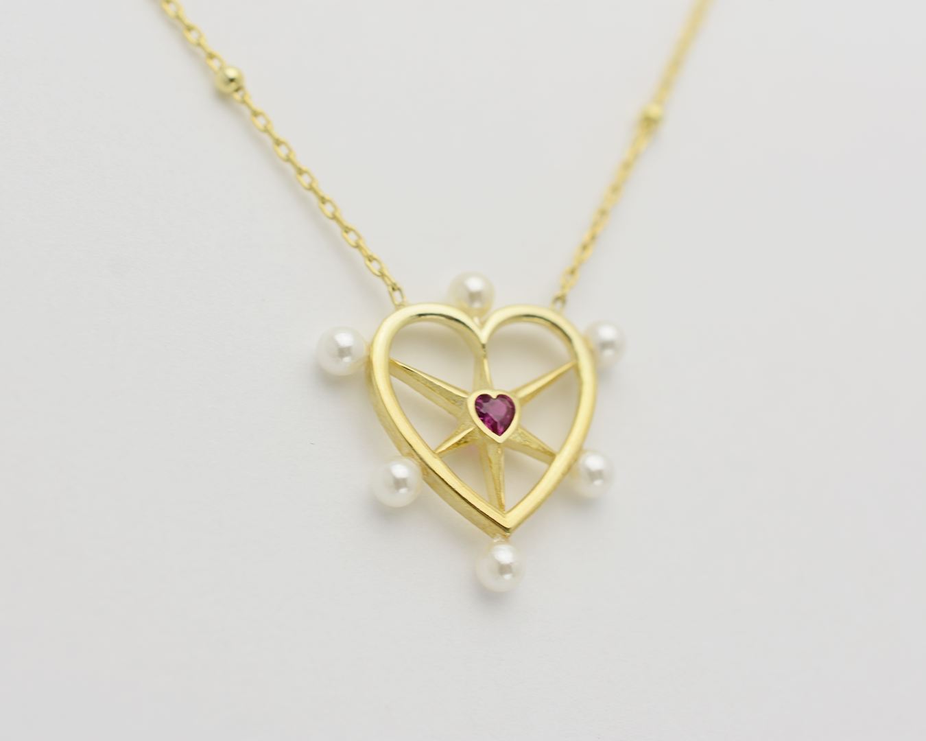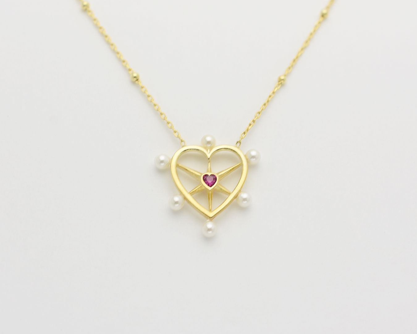 Pearl Ruby Heart Necklace