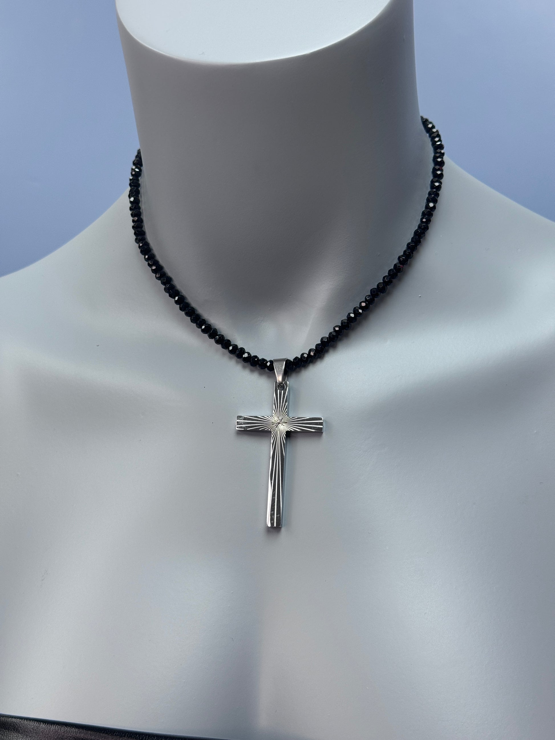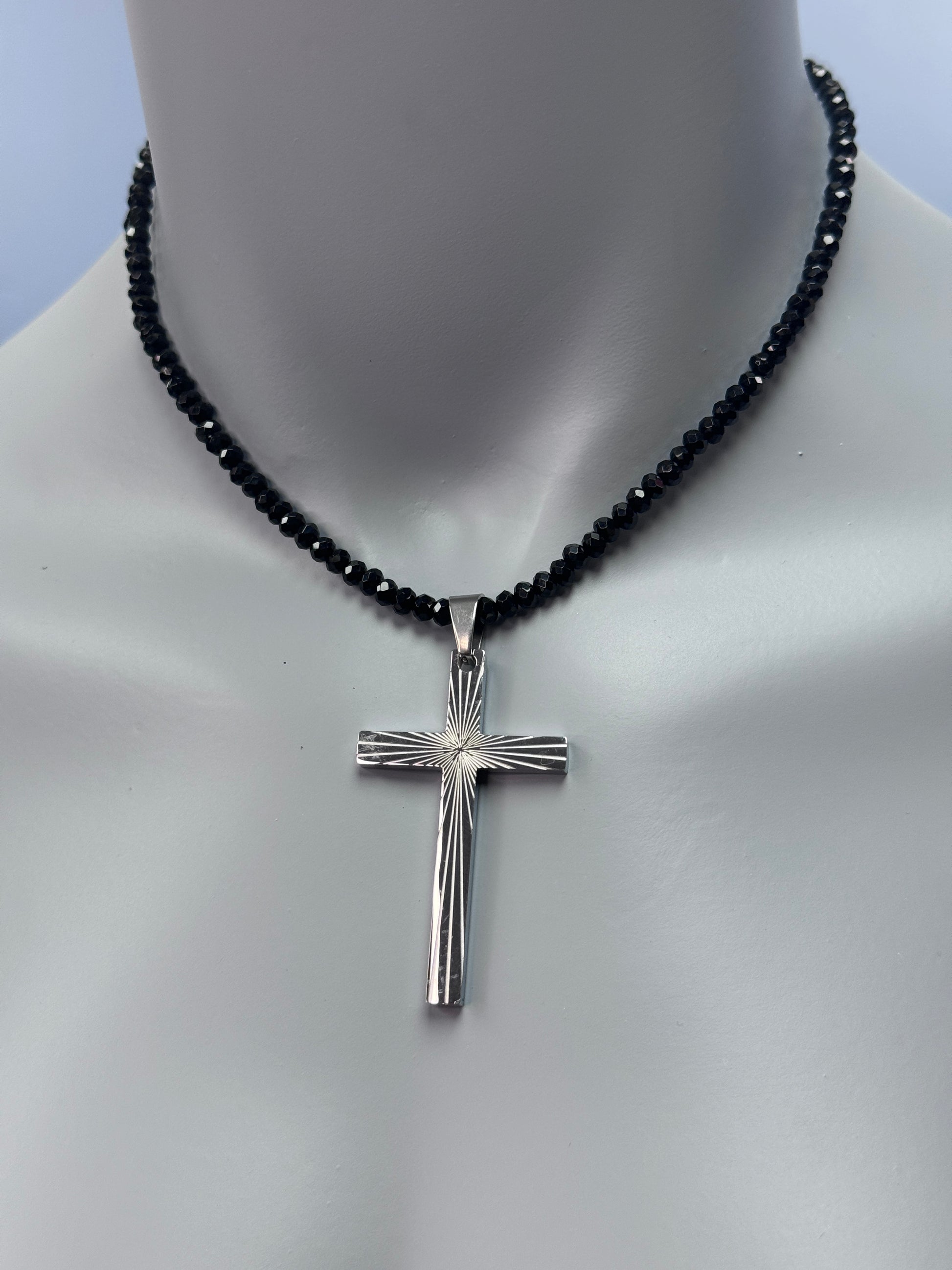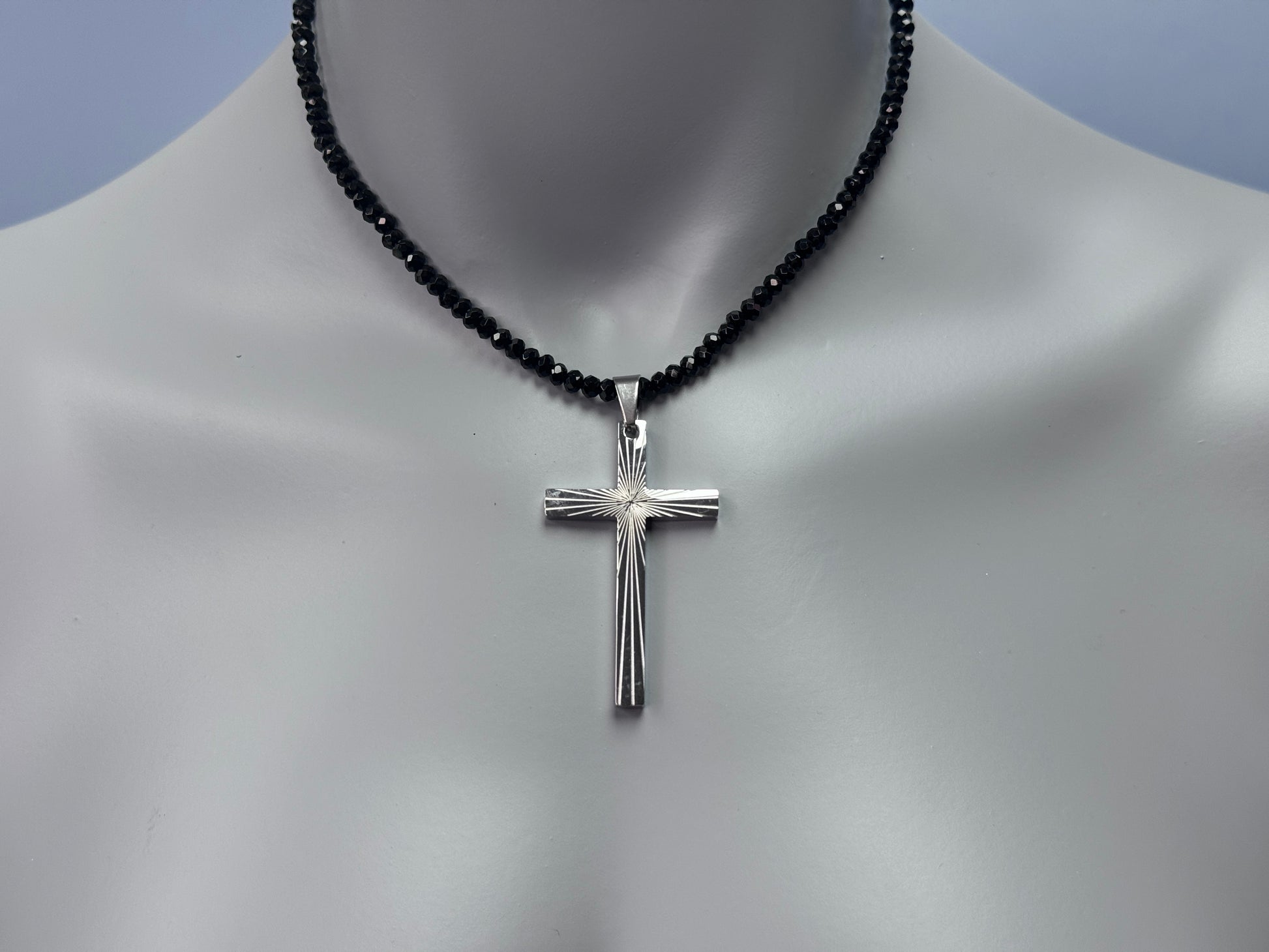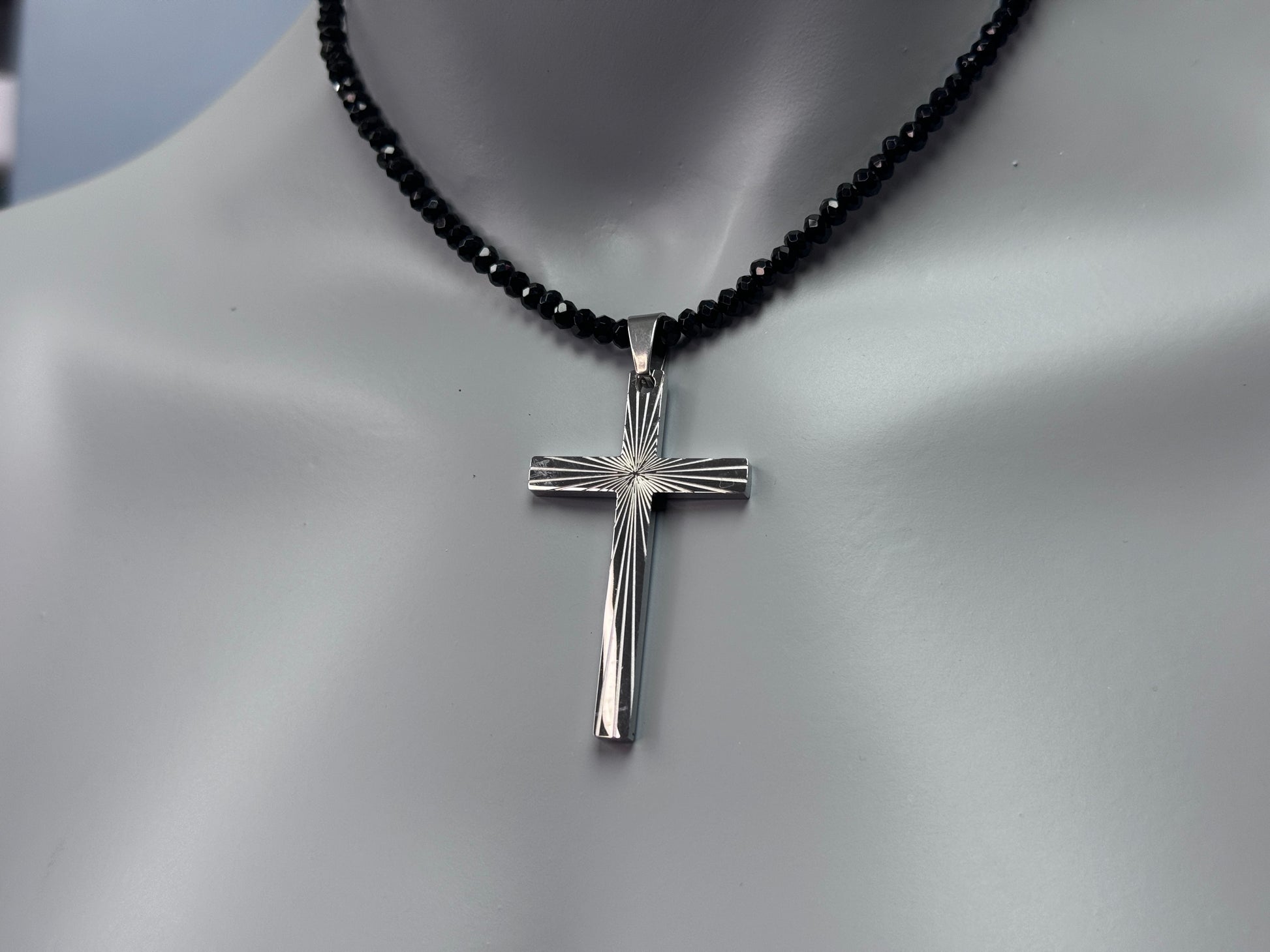 Charm: Stainless Steel Starburst Engraved Cross Pendant