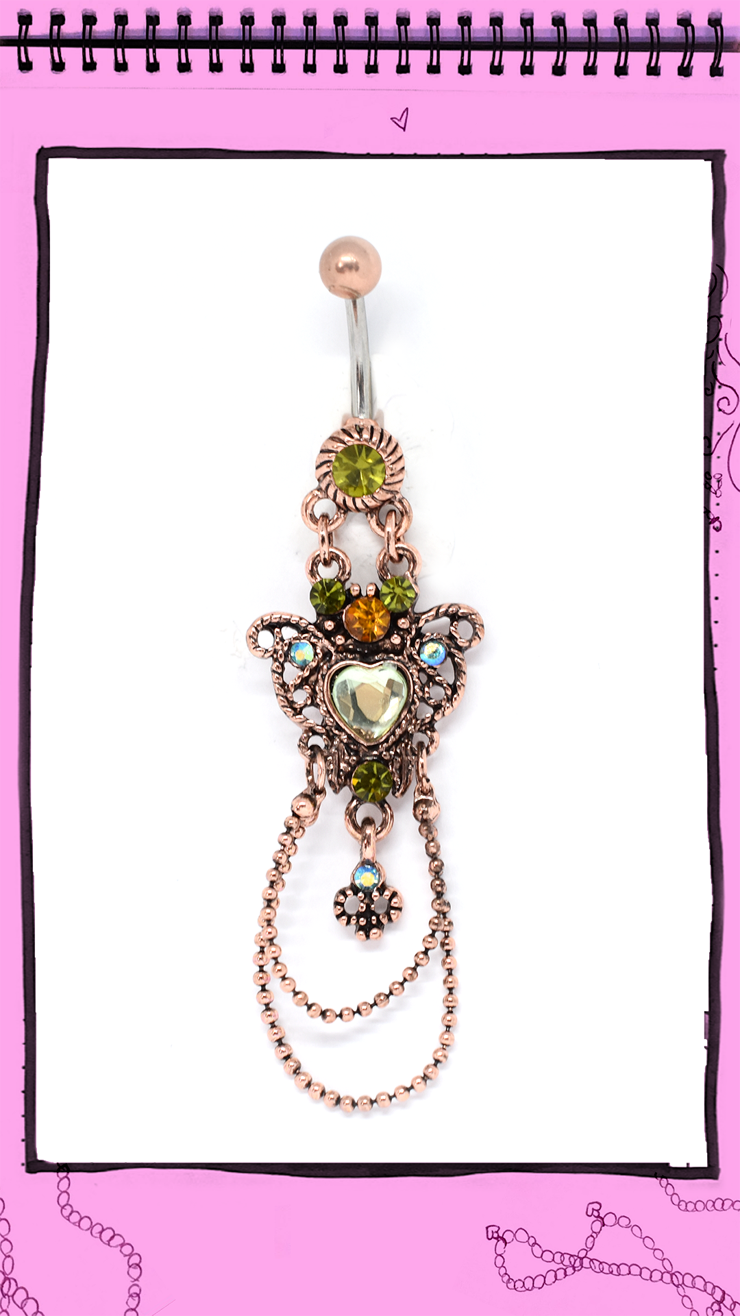 This chandelier belly button ring is made with Surgical Steel/ Brass - Antique Gold Plating.