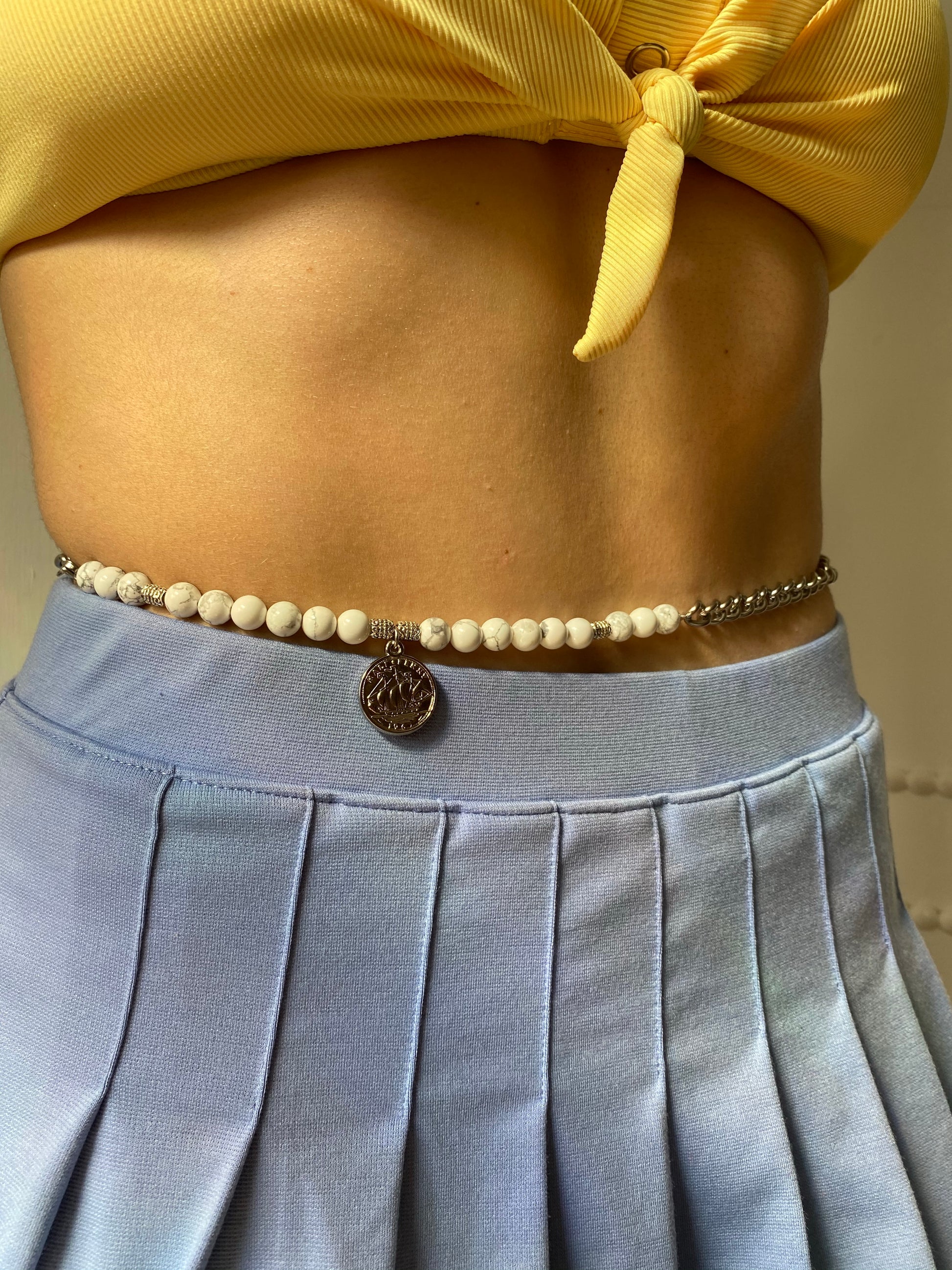White Howlite Beaded Belly Chain